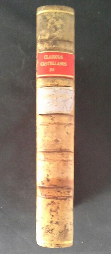 Encuadernación en pasta española con nervios y tejuelos rojo y celeste