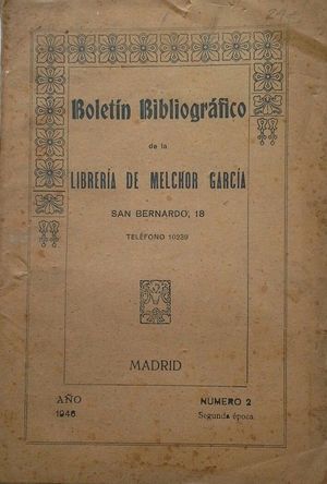BOLETÍN BIBLIOGRÁFICO DE LA LIBRERÍA DE MELCHOR GARCÍA - AÑO 1946 Nº 2 - SEGUNDA ÉPOCA
